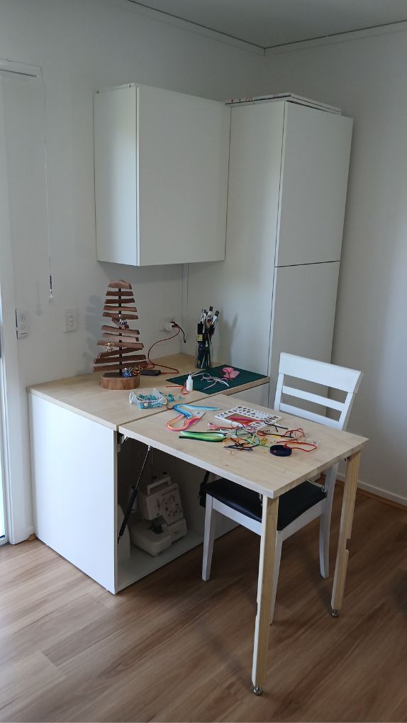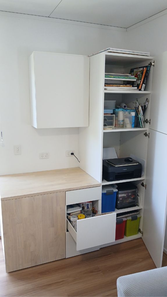 Bespoke craft corner to make the most out of the little space there is in a one bedroom granny-flat.