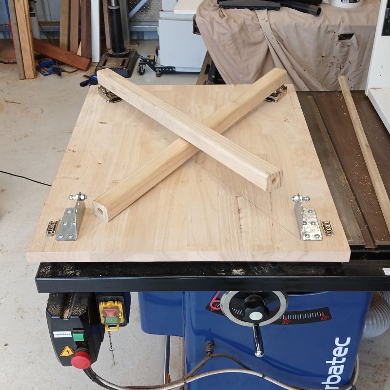 Which also meant that it had to hide those legs when stored away. I chose some readily available 90 degree self-locking folding hinges
