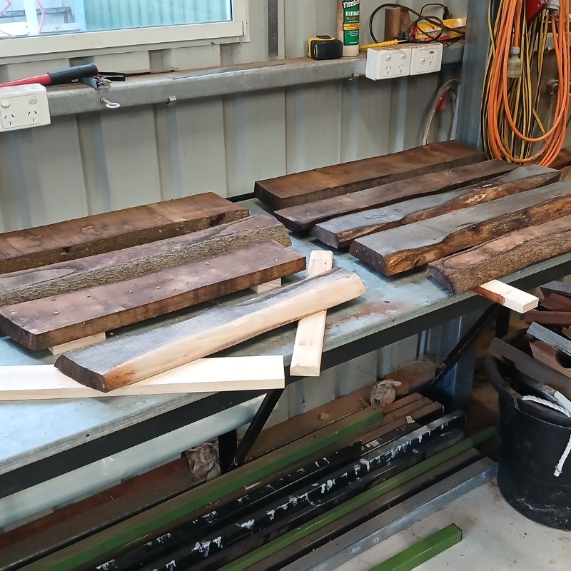 I chose the best suited Macadamia planks and cut them down to roughly 60mm width with the live edge showing.